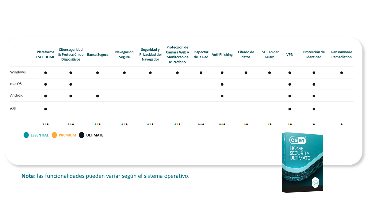 Refuerza tu seguridad con Protección de Identidad, VPN ilimitada y Ransomware Remediation. Evita estafas, cifre datos, compra con confianza y más. La Privacidad y Seguridad del Navegador y ESET Folder Guard protegen tu información.
